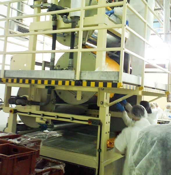 MILEX est une société slovaque avec un savoir-faire traditionnel. Elle fabrique des produits laitiers depuis maintenant 30 ans. Et entre autres, du fromage en tranches destiné aux fast foods et aux restaurants. Pour fabriquer ce produit, le fromage fondu est versé en fine couche de 1,5 mm sur un cylindre froid dont la température est maintenue à 8°C afin de refroidir le fromage. Le produit est ensuite découpé à la taille qui convient.