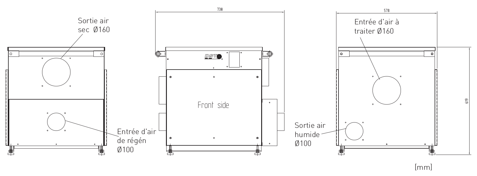 ¹ Valable pour des conditions d’entrée de 20°C / 60%Hr, et débits d’air nominaux. Pour des conditions d’air différentes, la capacité sera calculée à l’aide du diagramme de correction ci-dessous. ² Débit d’air avec une densité de 1,20 kg/m³. ³ Fusible 1 x 230V / 50Hz ⁴ Fusible 3 x 400V / 50 Hz, 3x 230V / 50Hz: 16A